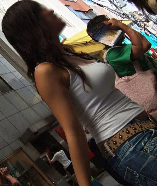 【画像】巨乳なのにタンクトップで街中歩いてる女子wwwwwww
